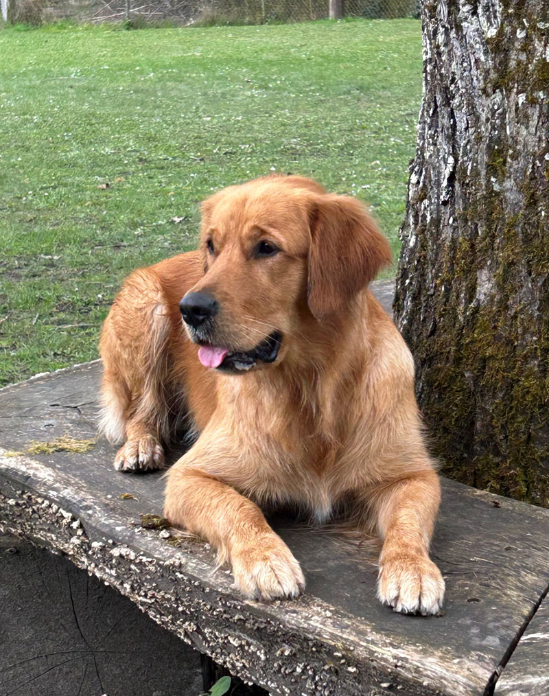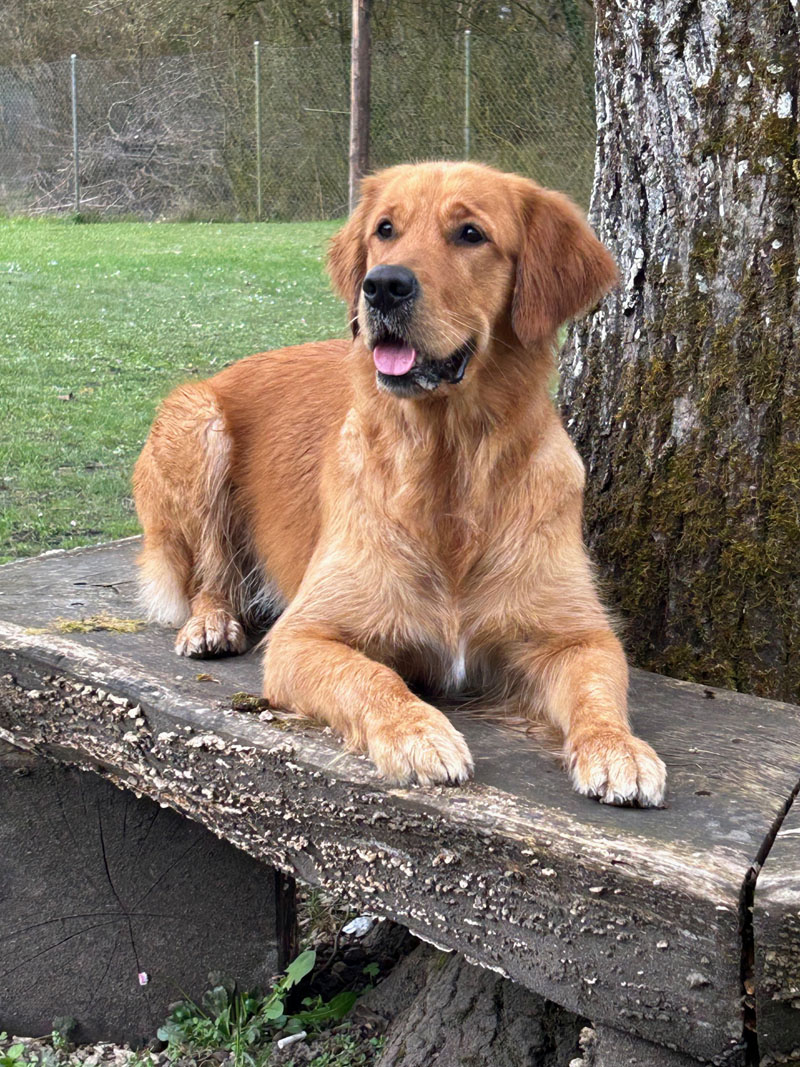 Am 15. März 2026 hat Gaby mit Oya LUMI’s Golden aus unserem O-Wurf vom 5.10.24 den Wesens- und Anlagetest sowie Formwertbeurteilung mit BRAVOUR bestanden. Dies bedeutet die Zuchtbewilligung, welche wir am 18.3.2026 erhalten haben (HD A/A, ED 0/0). Oya ist im Zuchtrecht und wir dürfen mit ihr züchten. Schon heute danken wir Gaby und Kurt für ihr Vertrauen und ihre jahrelange Freundschaft (sie hatten schon Anjo aus unserem A-Wurf) und heute Nando aus unserem H-Wurf und eben Oya aus unserem O-Wurf. Oya ist noch sehr jung. Ein Wurf ist voraussichtlich auf Ende 2027 geplant.